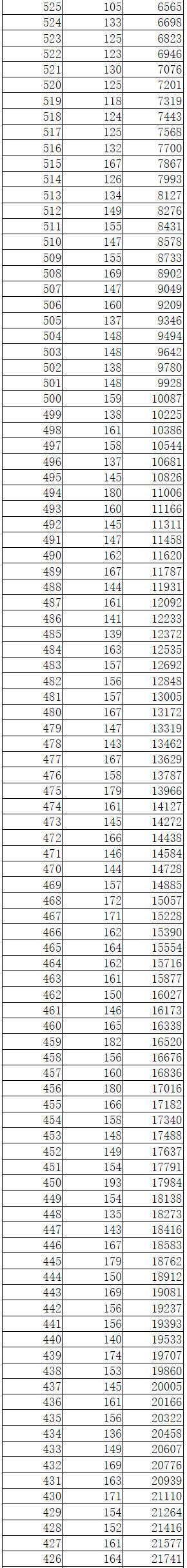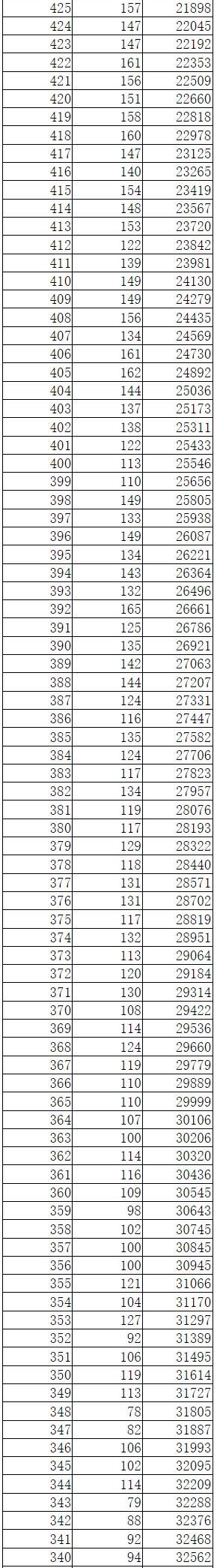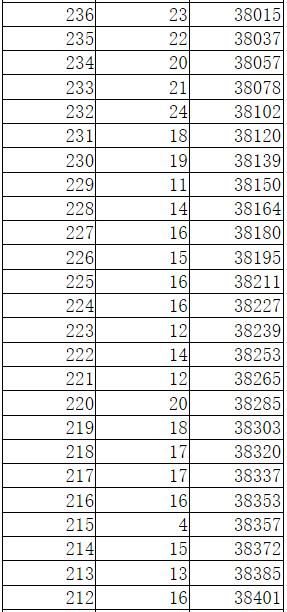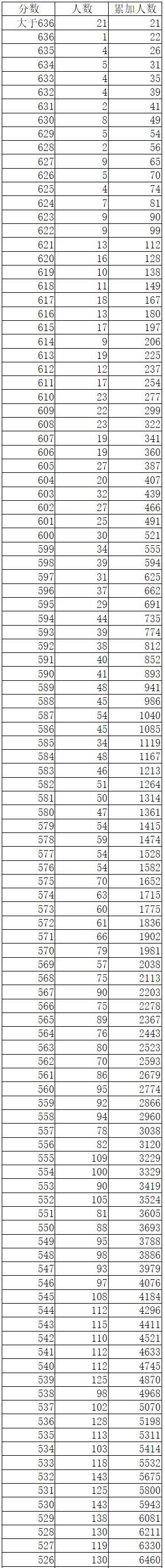 以下是关于2023年重庆高职分类考试普通类含加分成绩——分段: