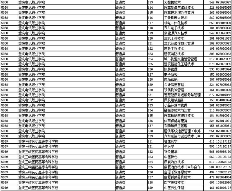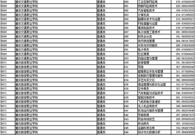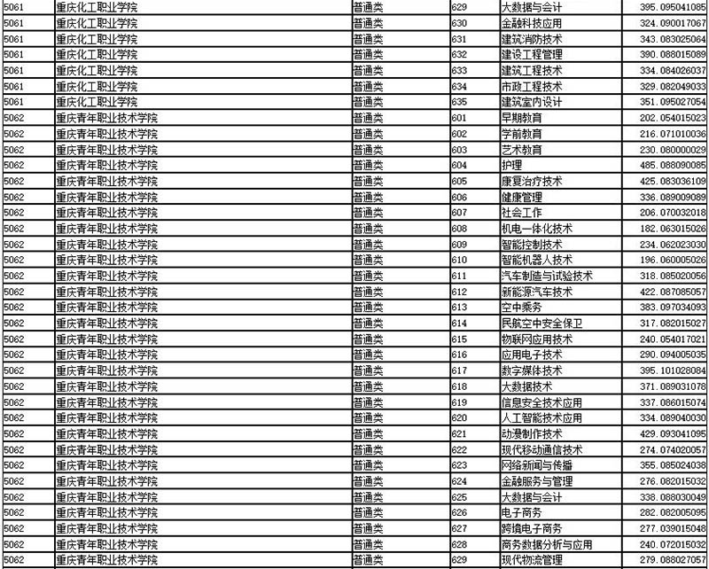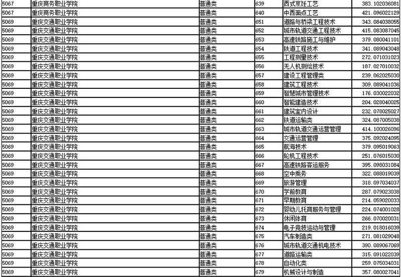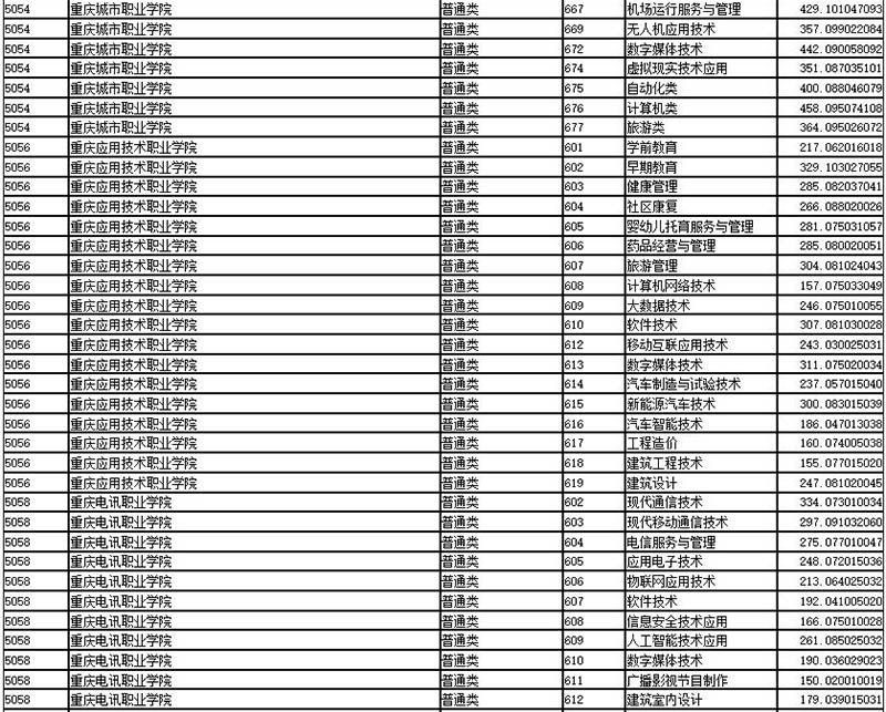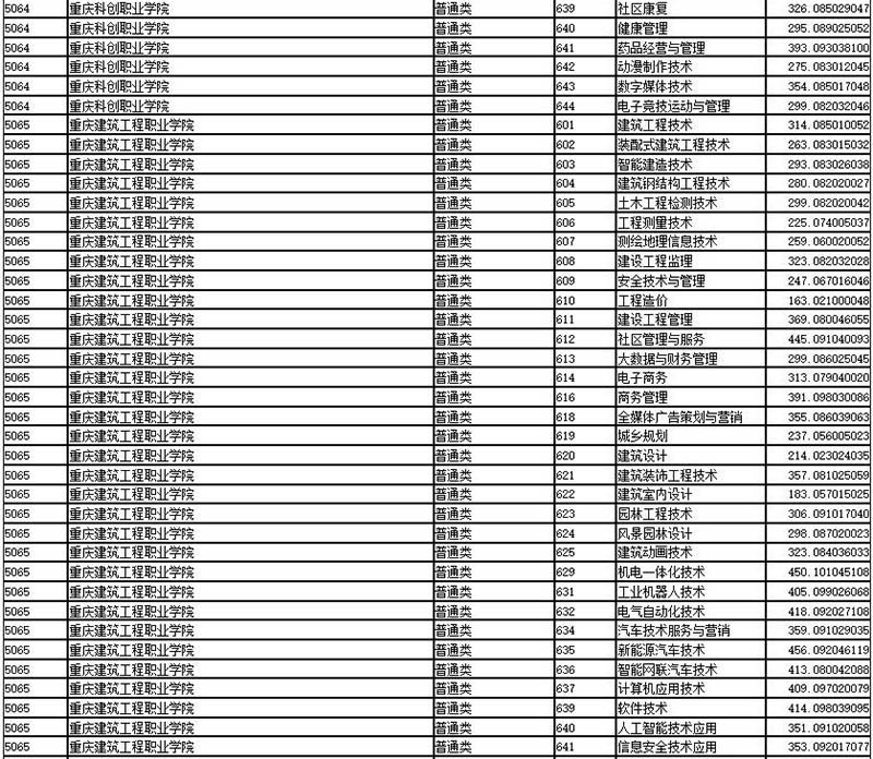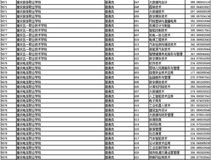 重庆2023年高职分类考试招生录取信息—普高类专科批(二)