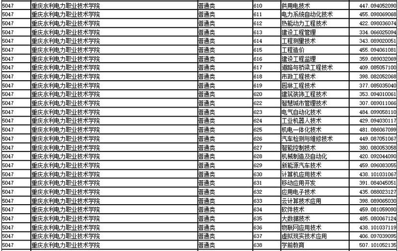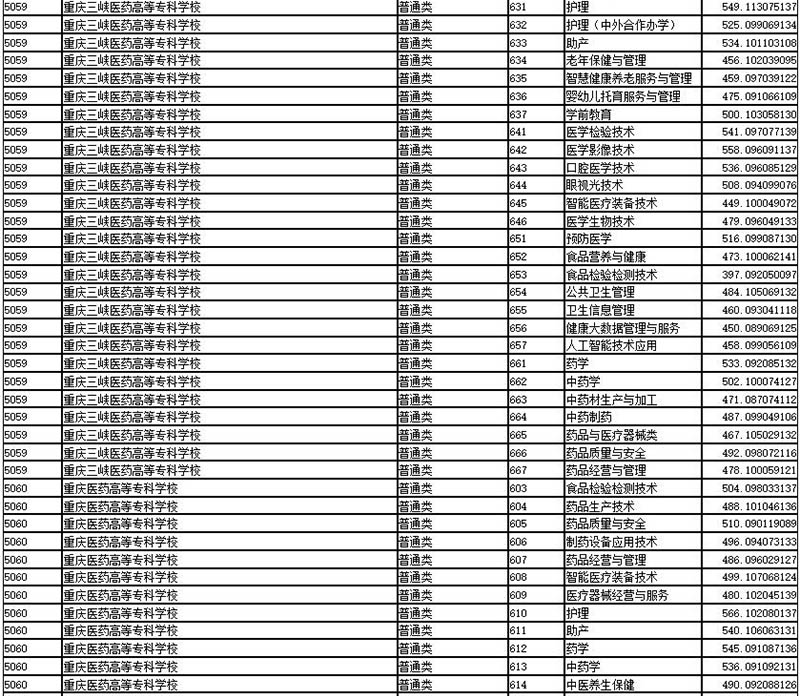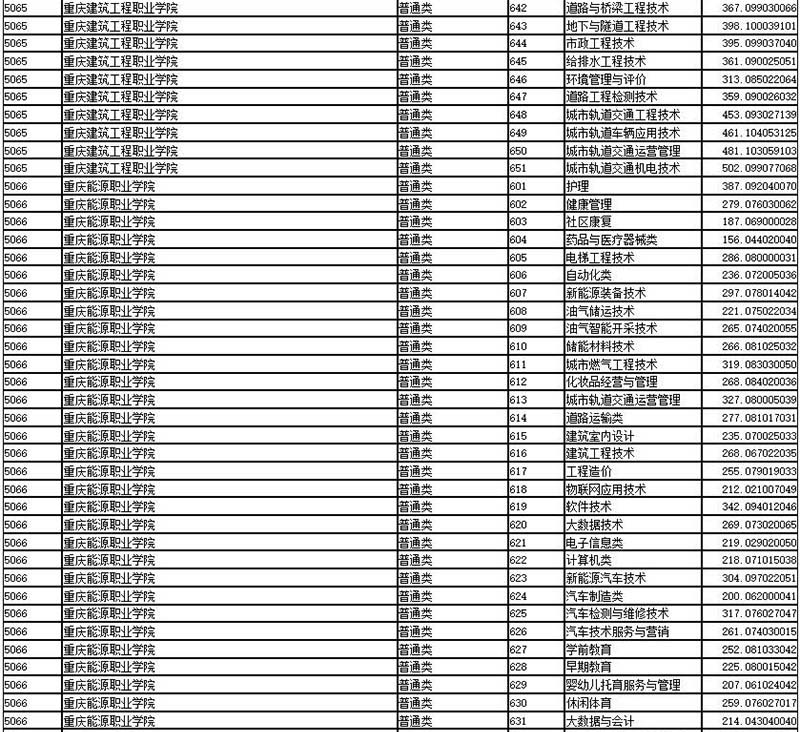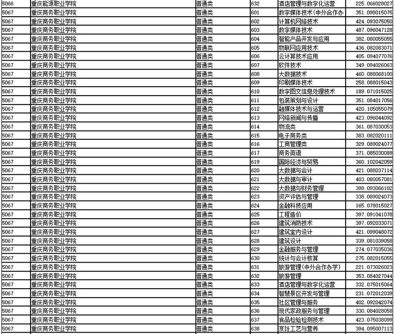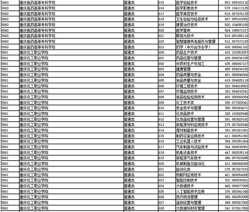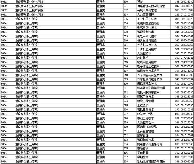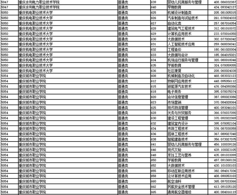 重庆2023年高职分类考试招生录取信息—普高类专科批(二)