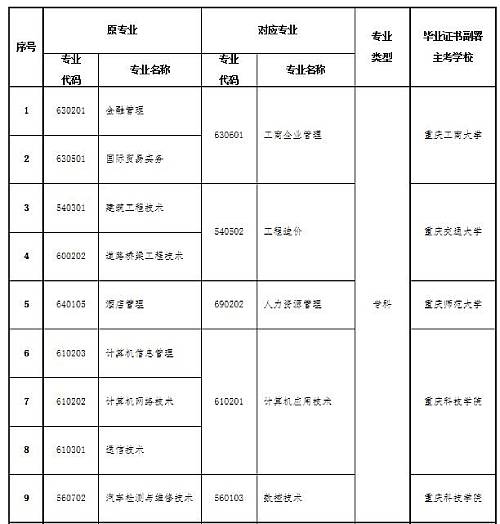 明年起,我市高等教育自学考试将停考这11个专业11月12日,重庆高等教育自学考试委员会发布通知,明确为推进高等教育自学考试专业调整工作,决定停考金融管理在内等11个专业,对于以符合毕业条件的,可仍旧按原专业要求办理毕业手续。