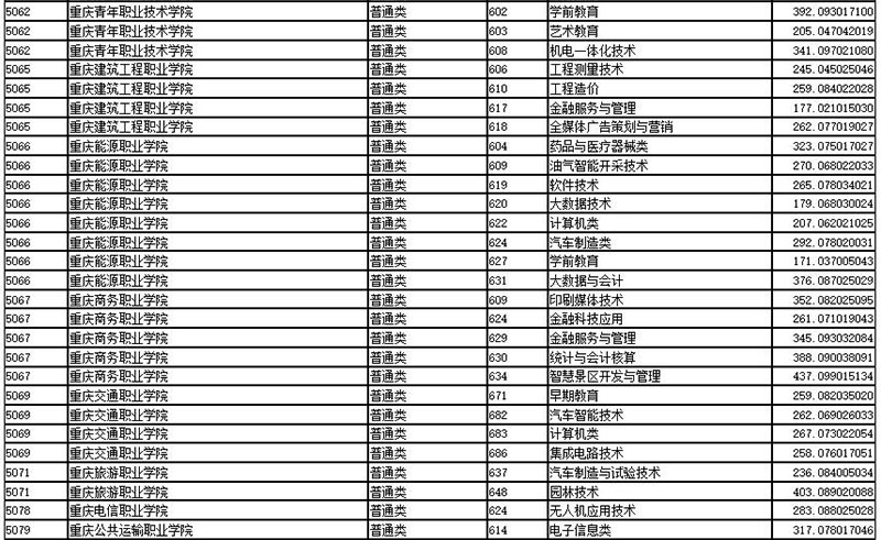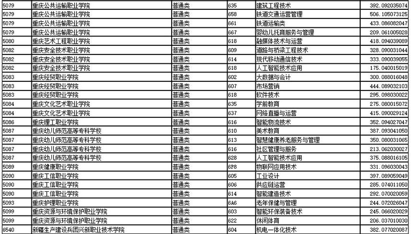 重庆2023年高职分类考试专科批第一次征集招生录取信息(普高类)