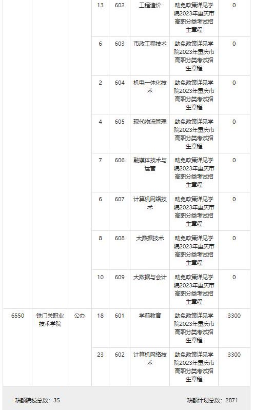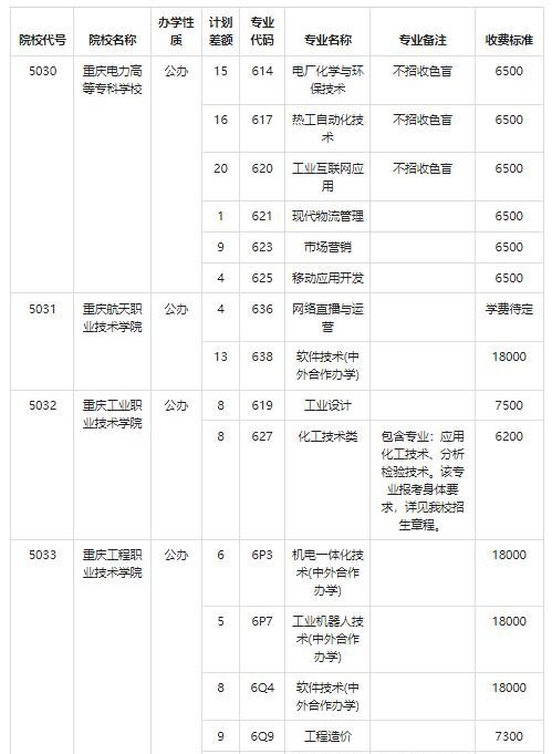 2023年重庆普通类高职分类专科批(第2次征集)缺额计划公布
