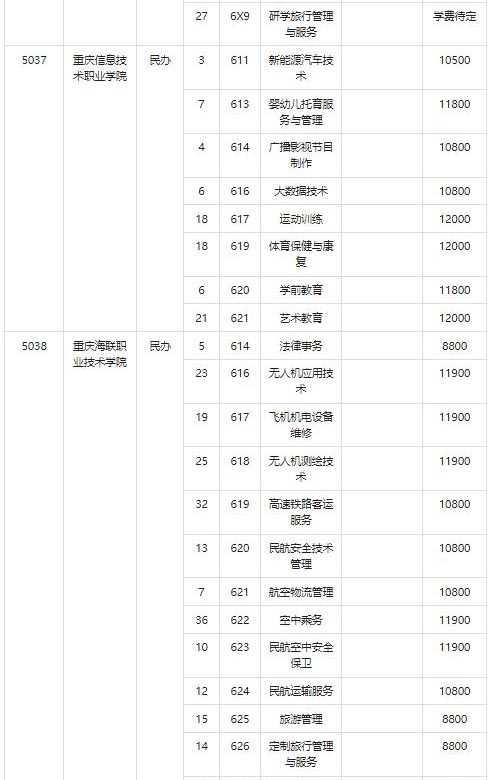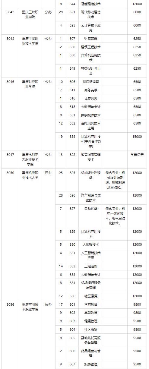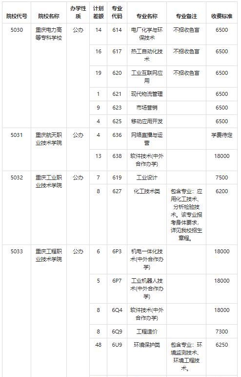 2023年重庆普通类高职分类专科批(第3次征集)缺额计划公布