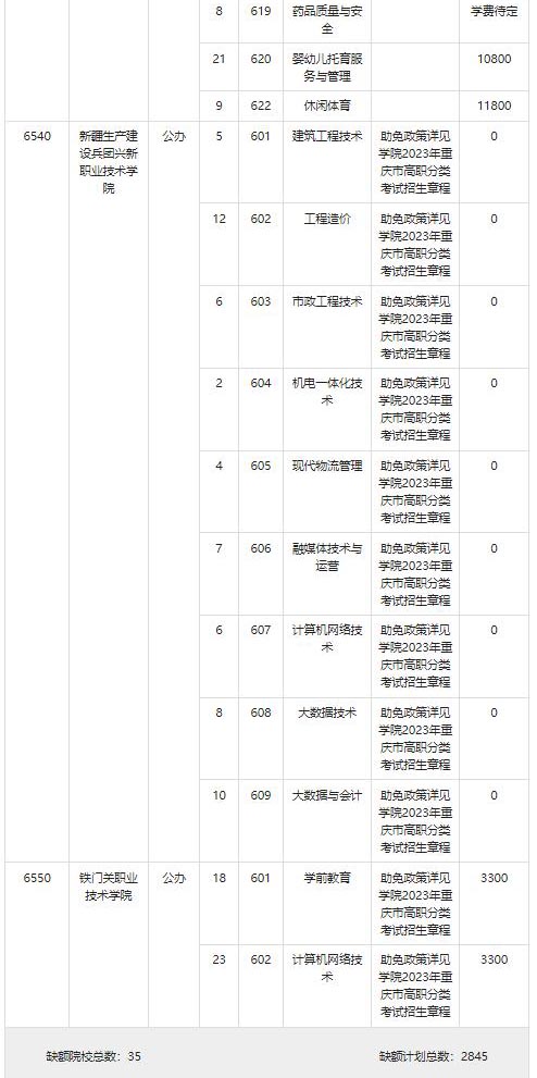 2023年重庆市普通类高职分类专科批(第3次征集)缺额计划已公布,本次缺额院校共有35个,缺额计划总数公2845个,具体相关内容整理如下,一起来看看。