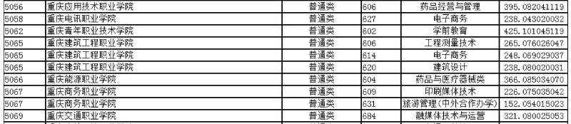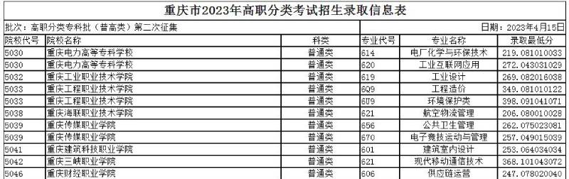 重庆教育考试院公布了关于2023年高职分类考试专科批第三次征集招生录取信息,以下是2023高职分类专科批——普高类第三次征集招生录取信息表: