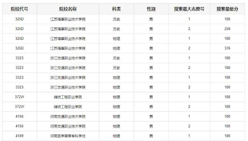 根据渝征〔2023〕66号《关于做好2023年招收定向培养军士工作的通知》有关规定,对符合相关条件(年龄不超过20周岁,2003年8月31日以后出生)且填报了定向培养军士招生志愿的考生。文化成绩达到我市专科录取控制线且在本科录取控制线以下的,分院校、科类(首选科目)、性别,按招生计划数的4倍,从高分到低分确定体检对象。先搜索一志愿,再搜索二志愿。搜索最大志愿号为“1”表示一志愿生源已足,不再搜索二志愿考生,其搜索最低分为一志愿入围考生最低分;搜索最大志愿号为“2”表示一志愿控制线上考生已全部入围,其搜索最低分为二志愿入围考生最低分。文化成绩达到我市本科批录取最低控制分数线的不计比例确定为体检对象。