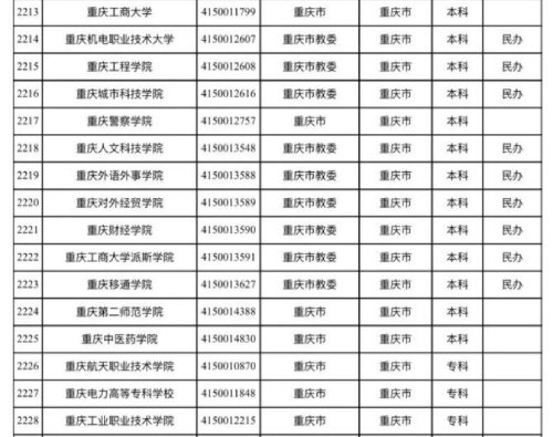 附:重庆71所普通高等学校名单