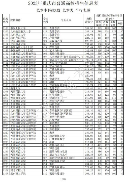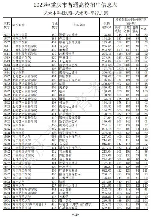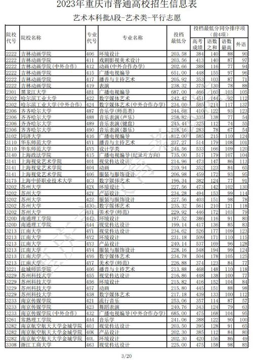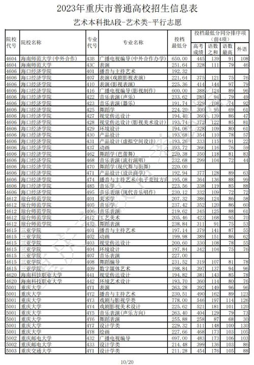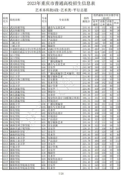 2023年重庆普通高校招生信息表艺术本科批A段(艺术类)平行志愿(一)发布时间:2023/7/14 10:23:36 | 人感兴趣 | 评分:3