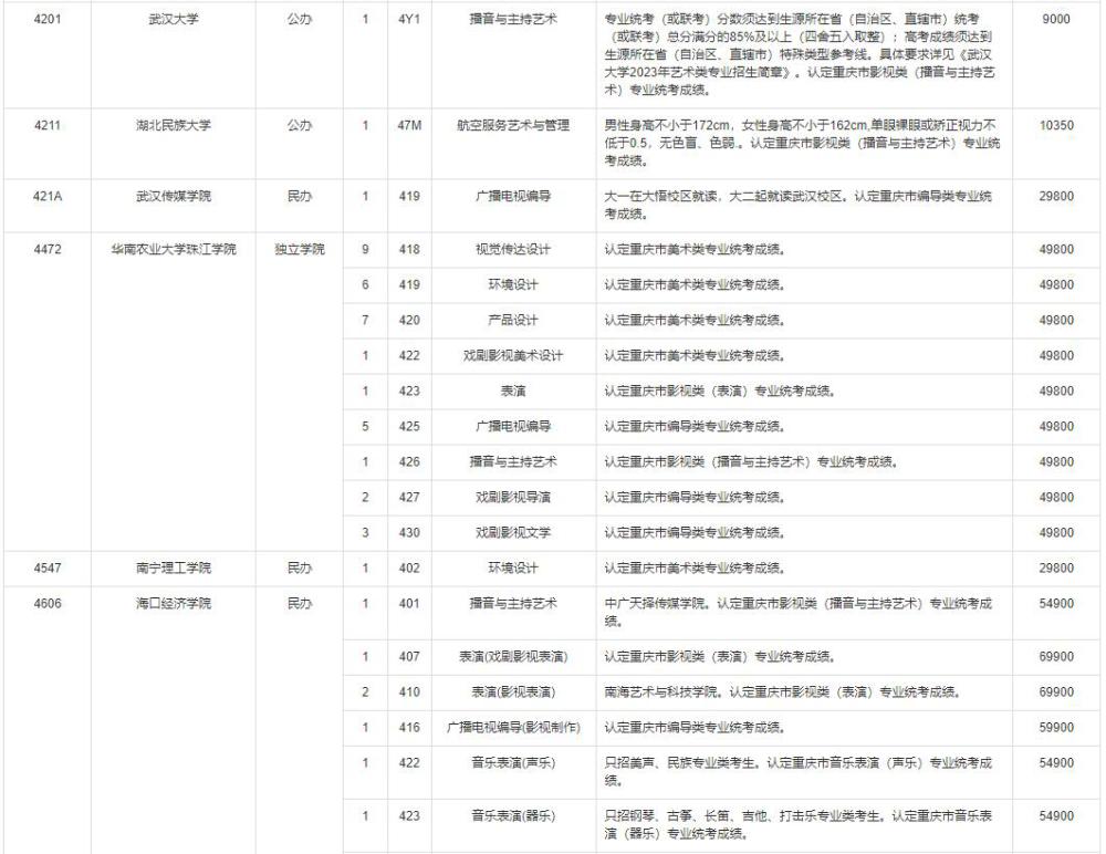据重庆教育考试院发布通知,关于2023年艺术类艺术本科批(第1次征集)缺额计划已公布,具体内容如下: