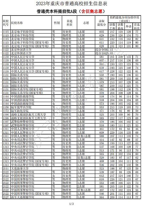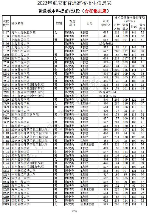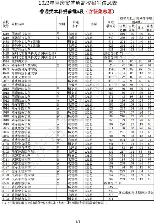 2023年重庆普通高校招生信息普通类本科提前批A段征集志愿
