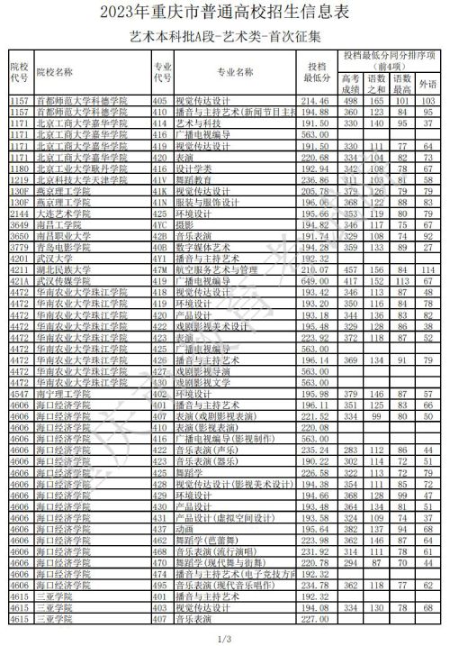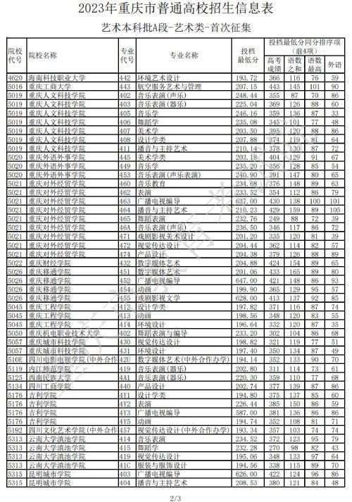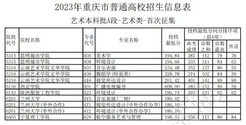 重庆市教育考试院发布关于2023年普通高校招生信息表=艺术类本科批A段-艺术类-首次征集信息,具体情况如下: