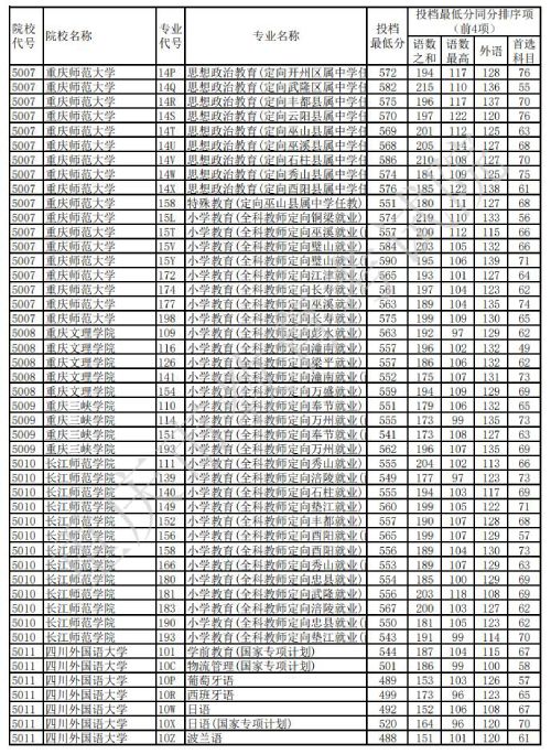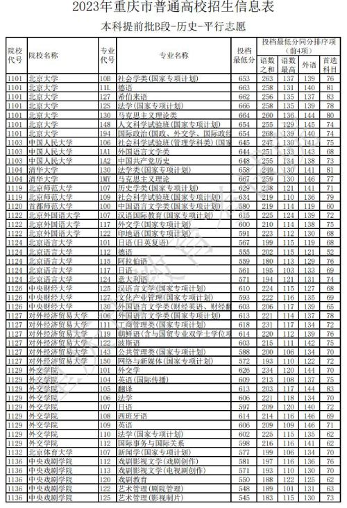重庆市教育考试院发布关于2023年普通高校招生信息表-本科提前批B段(历史)平行志愿信息,具体如下: