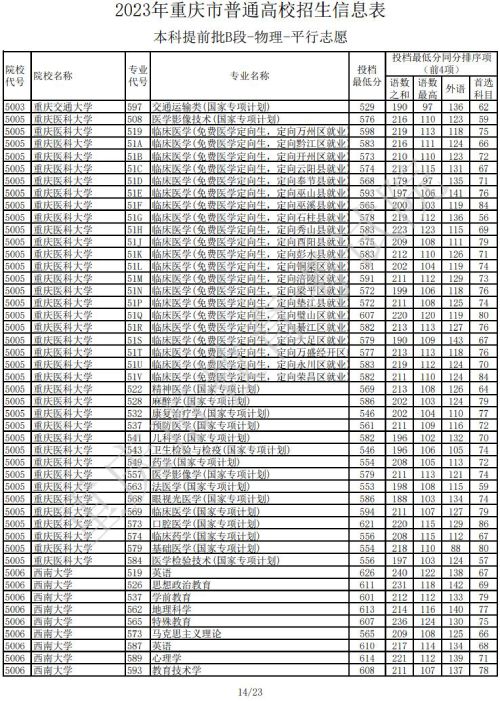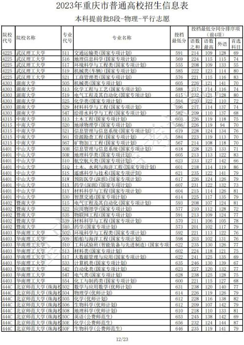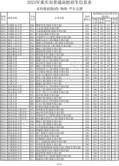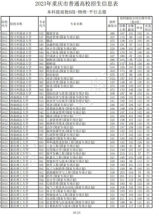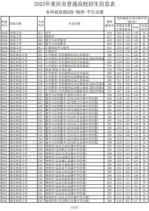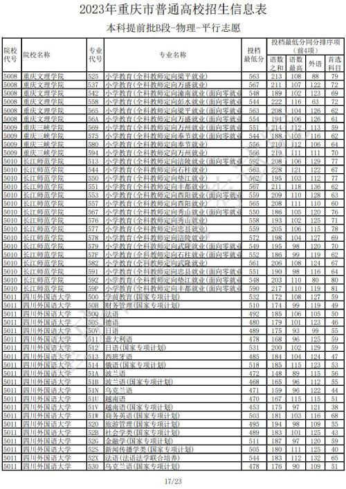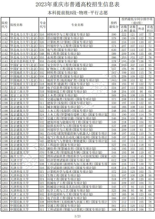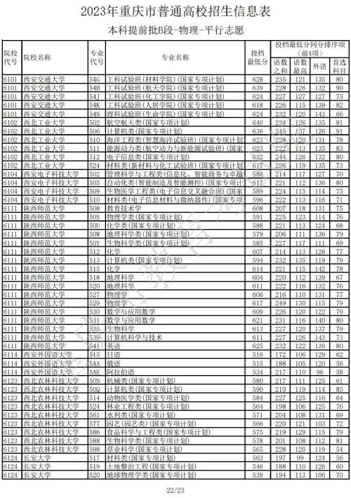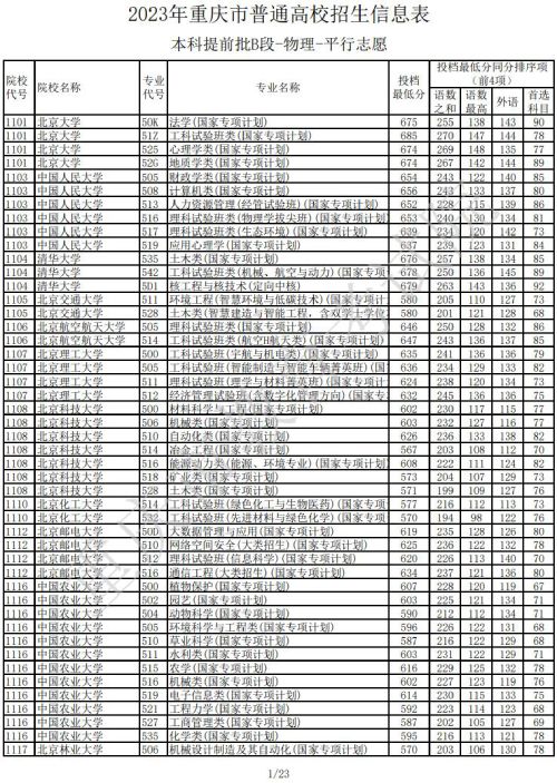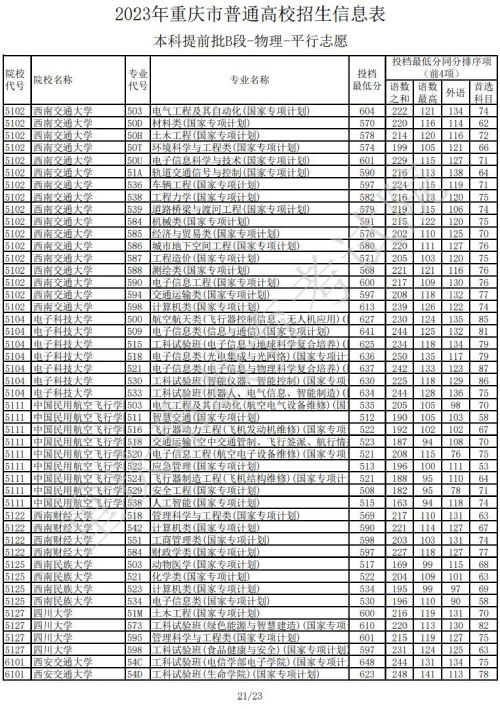 2023年重庆市普通高校招生信息表本科提前批B段-物理-平行志愿已公布,具体内容如下: