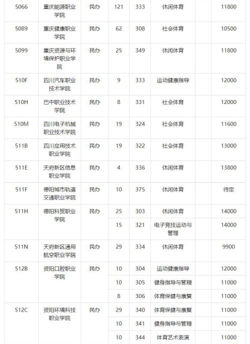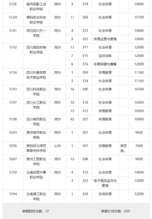 2023年重庆体育类体育专科批第2次征集缺额计划