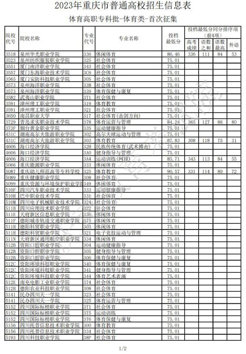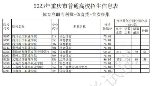 关于2023年重庆市普通高校招生信息表体育高职专科批-体育类-首次征集信息已公布,具体内容如下: