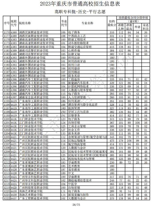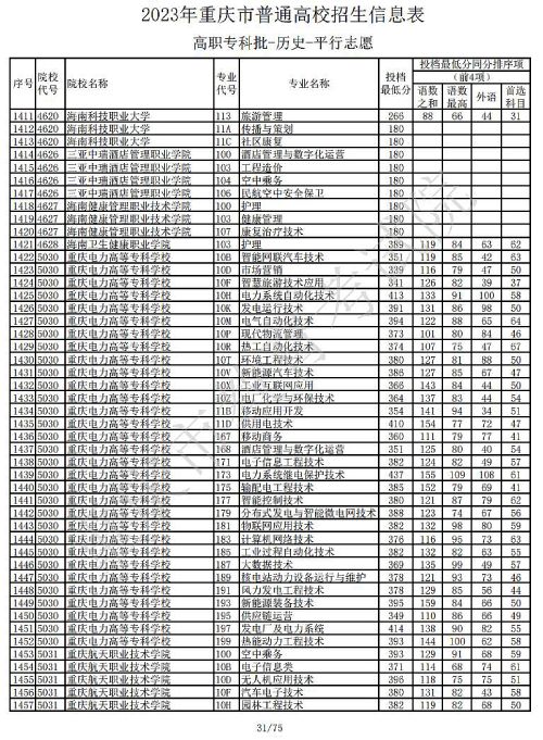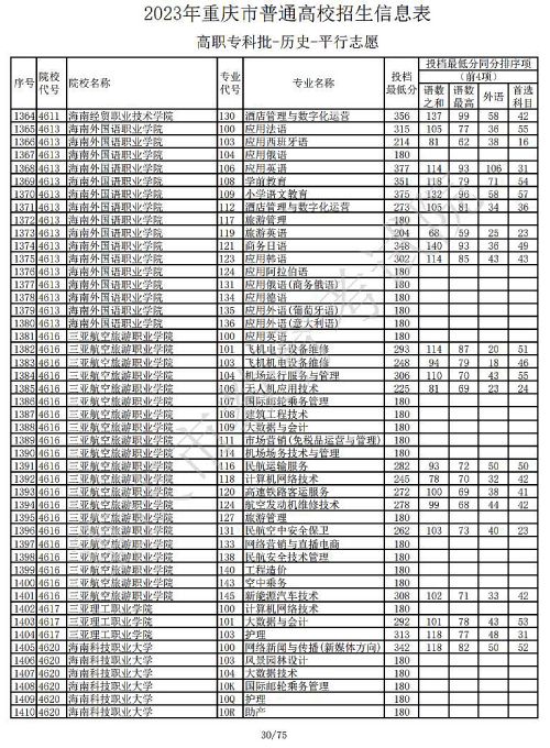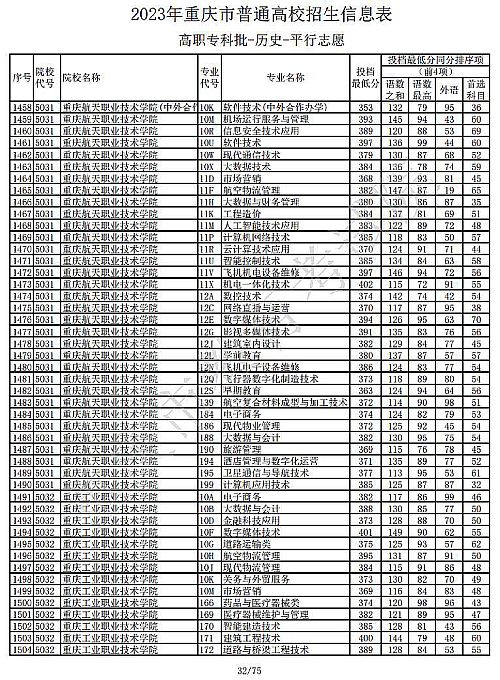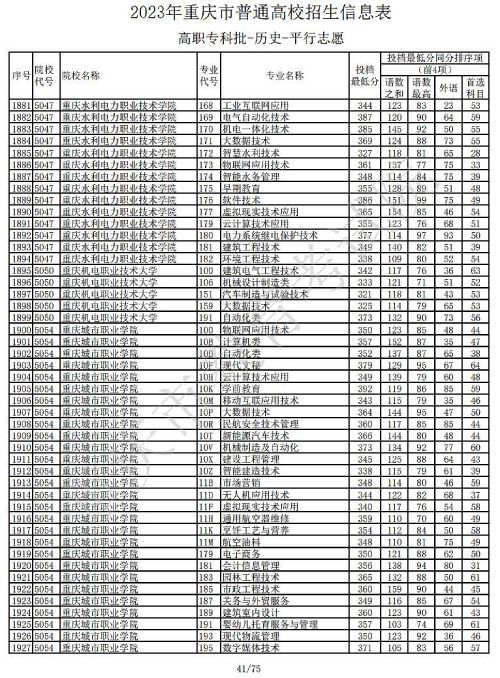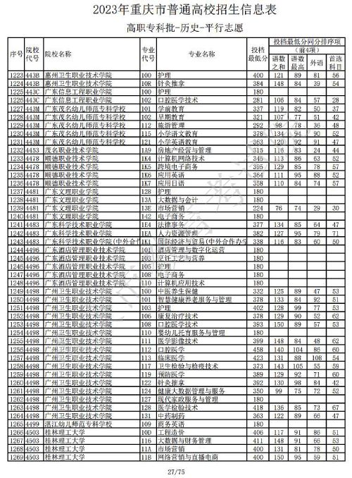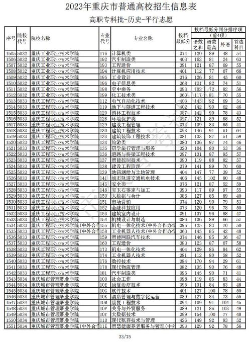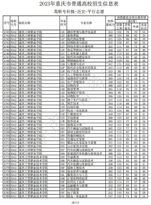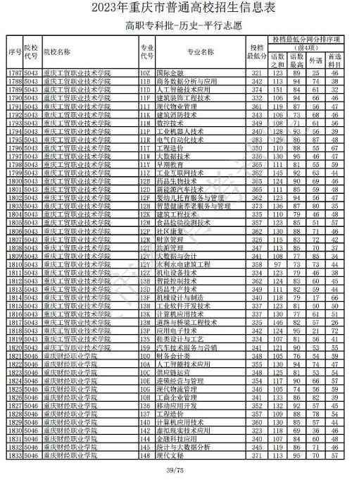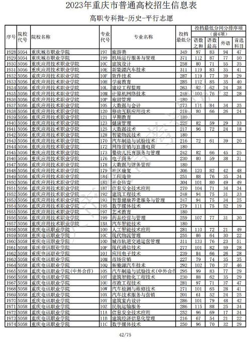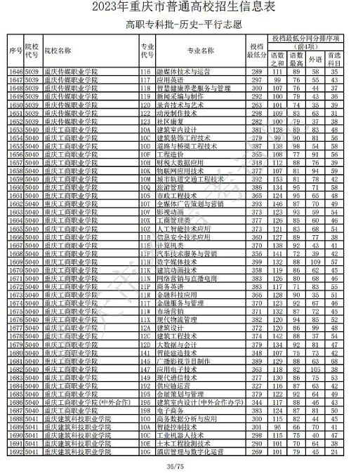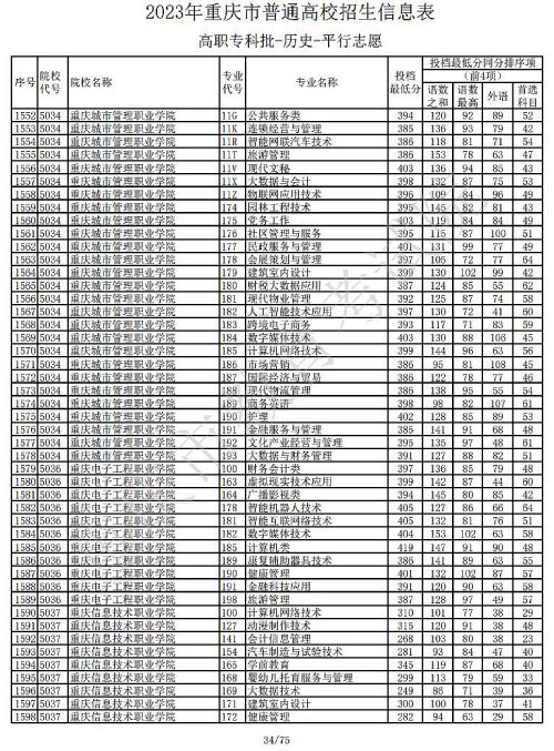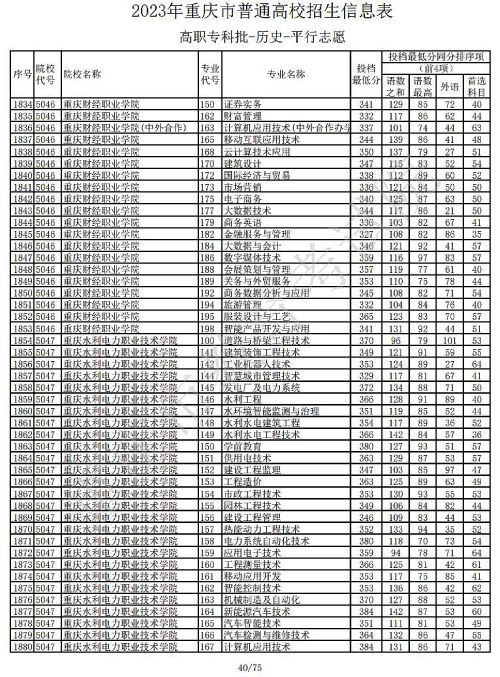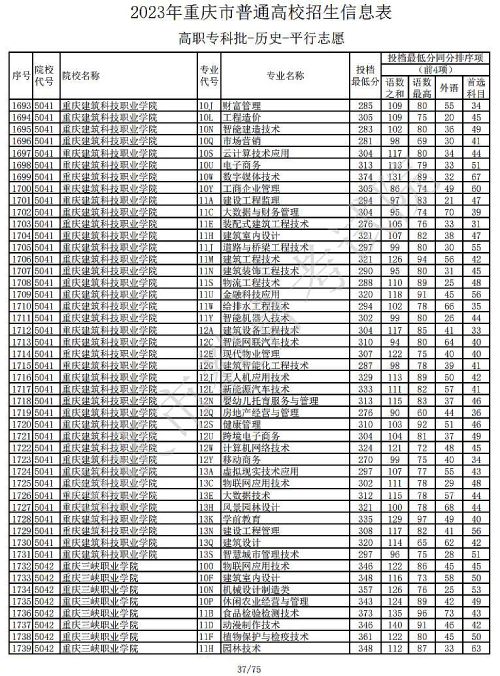 关于2023年重庆市普通高校招生信息表高职专科批-历史-平行志愿公布,具体如下: