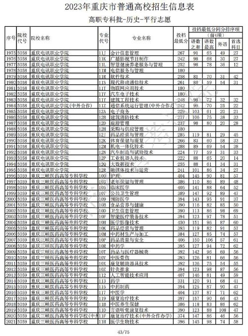 2023年重庆普通高校招生信息表高职专科批-历史-平行志愿(二)