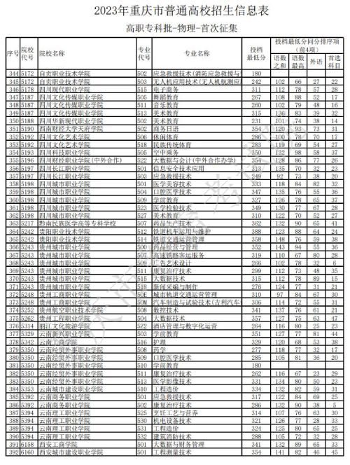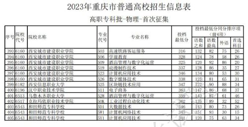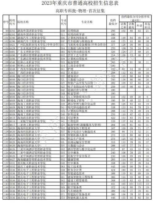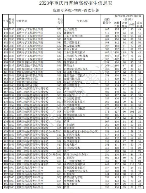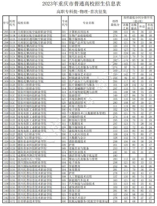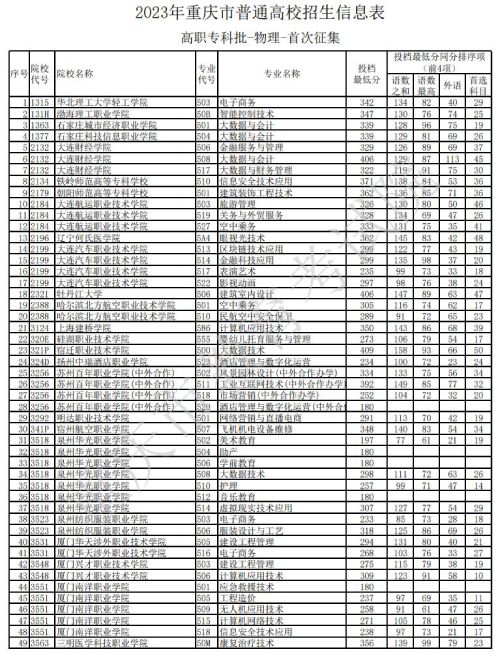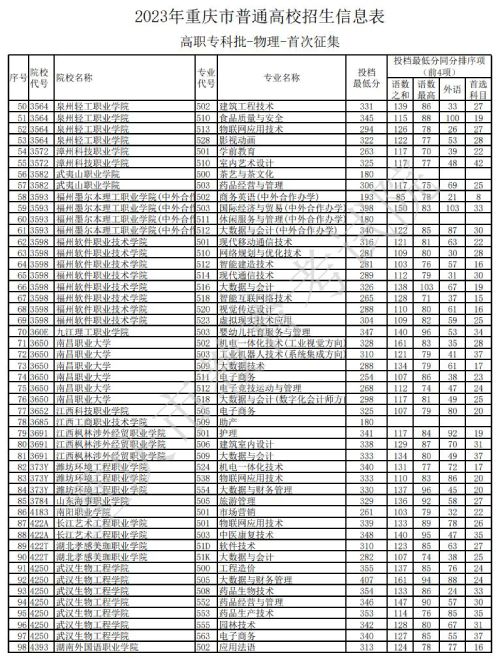 关于2023年重庆市普通高校招生信息表高职专科批-物理-首次征集信息公布,具体如下: