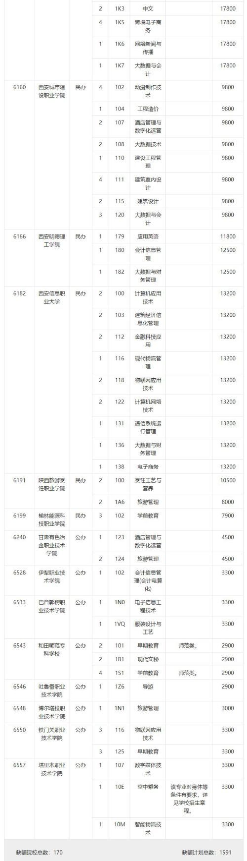 2023年历史类高职专科批第2次征集志愿缺额计划公布
