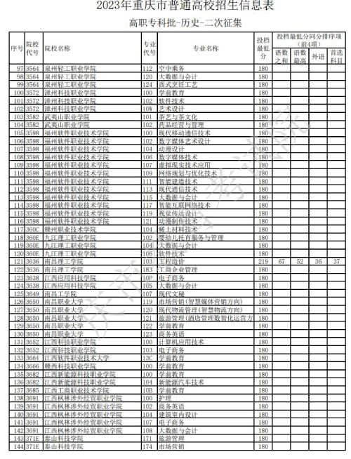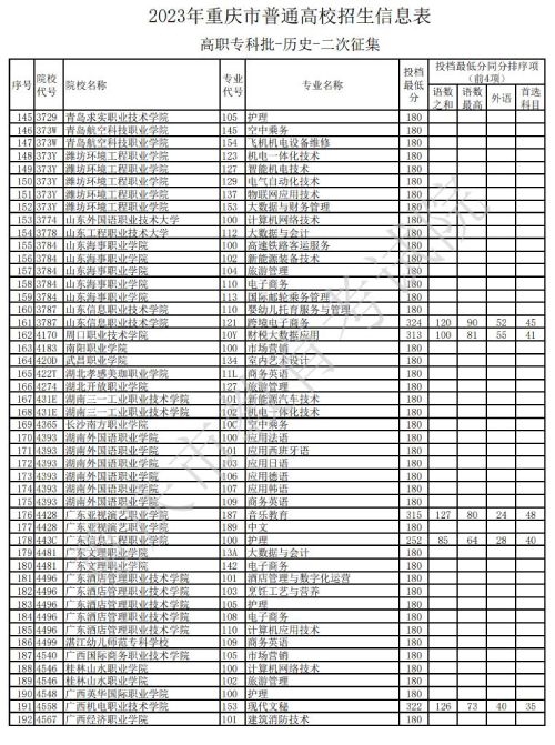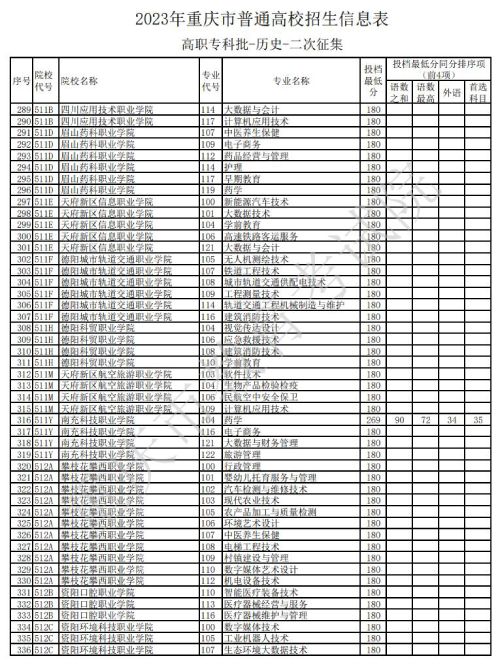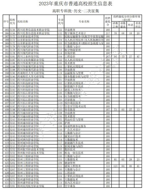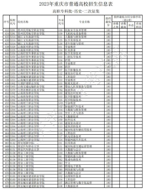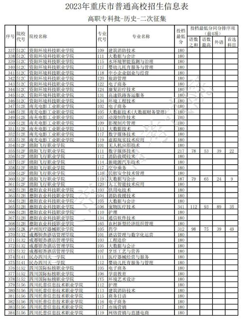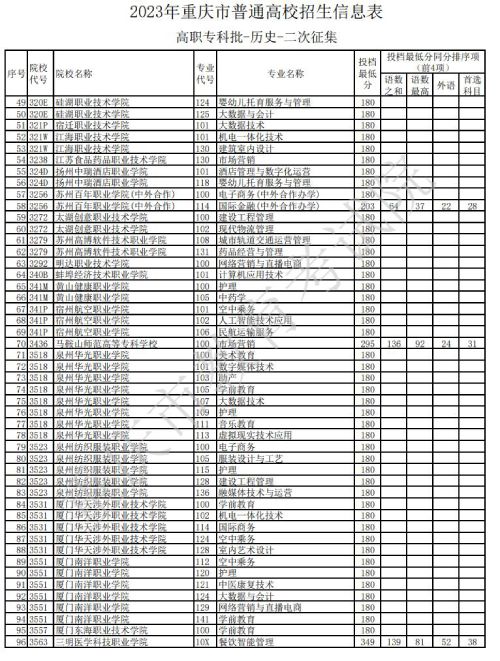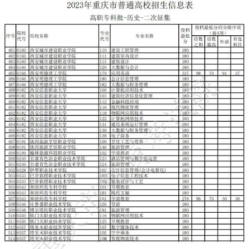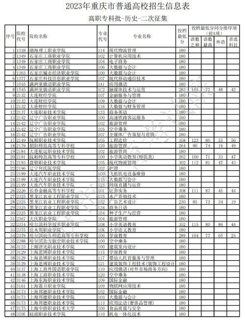 据重庆教育考试院官网发布的消息,关于2023年重庆市普通高校招生信息表高职专科批-历史类-二次征集信息发布,具体如下: