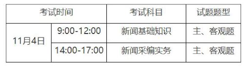 新闻记者职业资格考试设立“新闻基础知识”“新闻采编实务”2个科目,各科目均为主、客观题混合科目。新闻记者职业资格考试成绩实行2年为一个周期的滚动管理方法,考生必须在连续的两个考试年度内参加全部应试科目考试合格,方可取得新闻记者职业资格考试成绩合格证明。