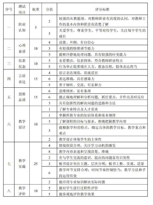 采取结构化面试和情境模拟相结合的方法,通过抽题备课、试讲、答辩等方式进行。