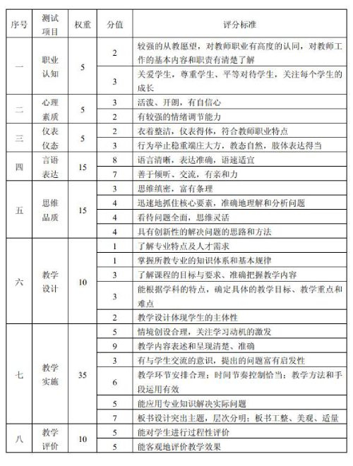 采取结构化面试和情境模拟相结合的方法,通过抽题备课、试讲、答辩等方式进行。