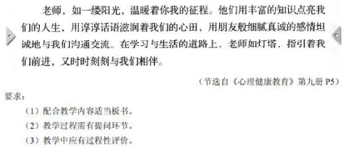 面试主要考察申请教师资格人员应具备的新教师基本素养、职业发展潜质、教育教学实践能力,主要包括: