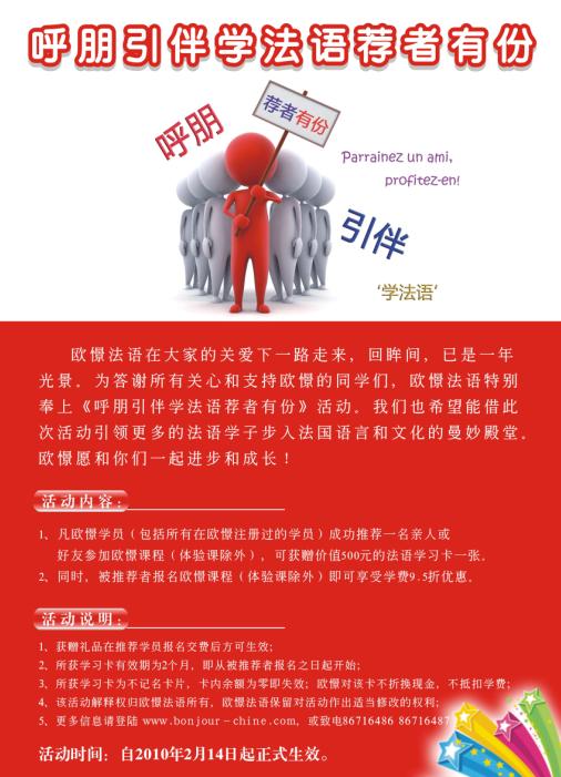 重庆欧憬法语---呼朋引伴学法语,荐者有份