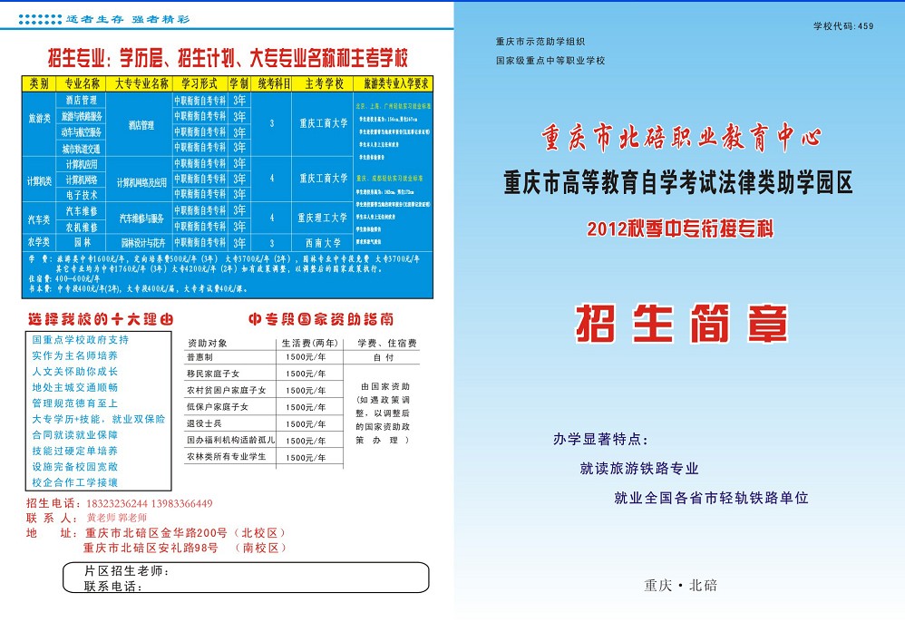 特色:就读旅游铁路专业,就读全国各省市轻轨铁路单位。点击图片查看大图: