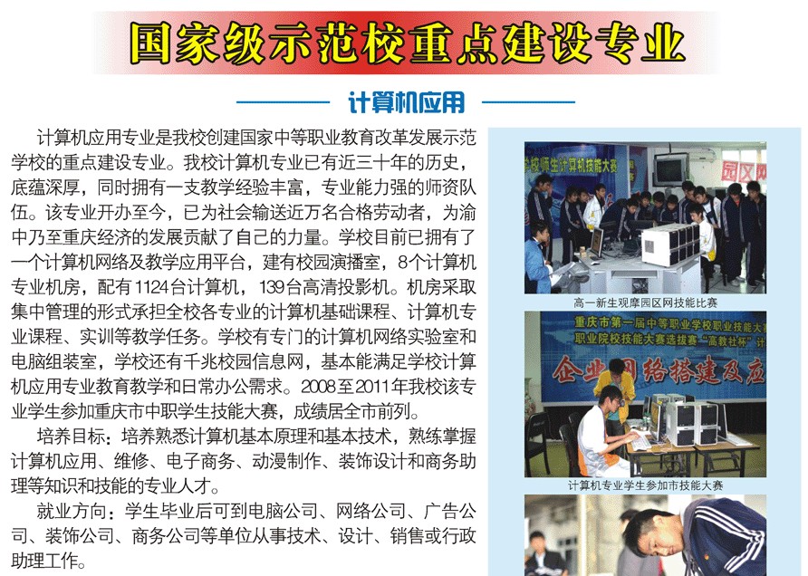 重庆市渝中区职业教育中心,是一所规模大、实力强、综合性、示范性公办国家级重点中等职业学校。