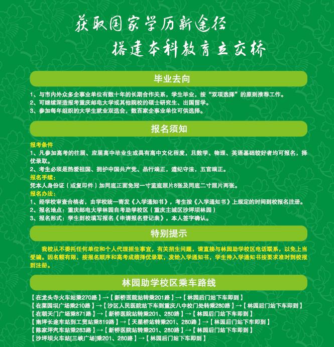 重庆邮电大学专衔本招生简章