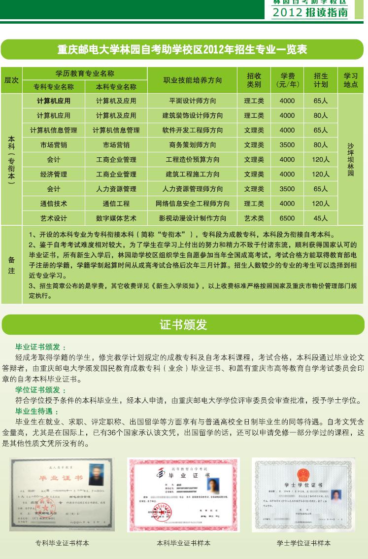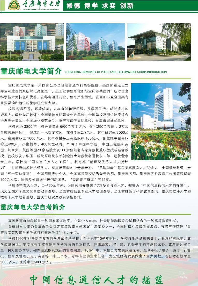 招生老师:郭老师 18323236244 023-86878429 13996255372 或QQ:1174576453 点击图片可查看2012重庆邮电大学专衔本招生简章清晰大图