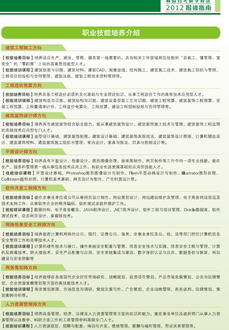 学历教育专业名称(专科 本科)及职业技能培养方向