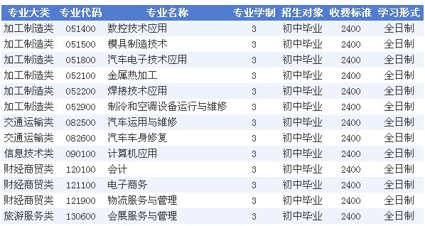 交通运输类082600汽车车身修复3初中毕业2400全日制
