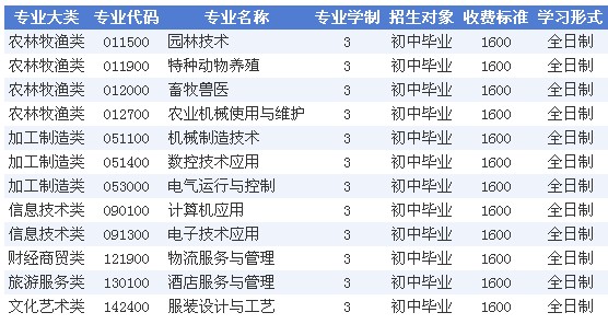 农林牧渔类011500园林技术3初中毕业1600全日制