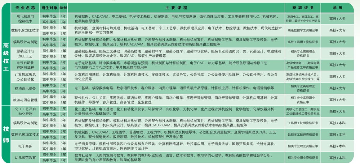 重庆市行知技师学院2014招生专业