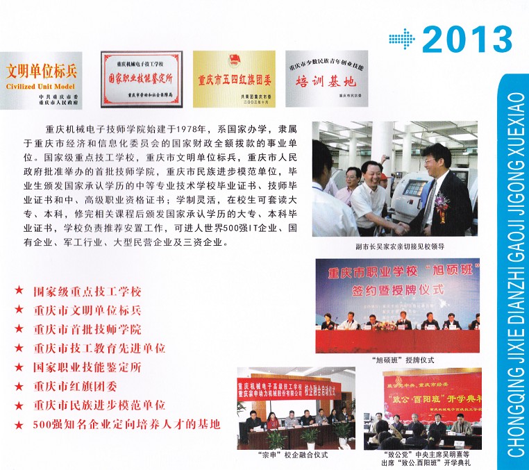 点击查看重庆机械电子技师学院2013招生专业