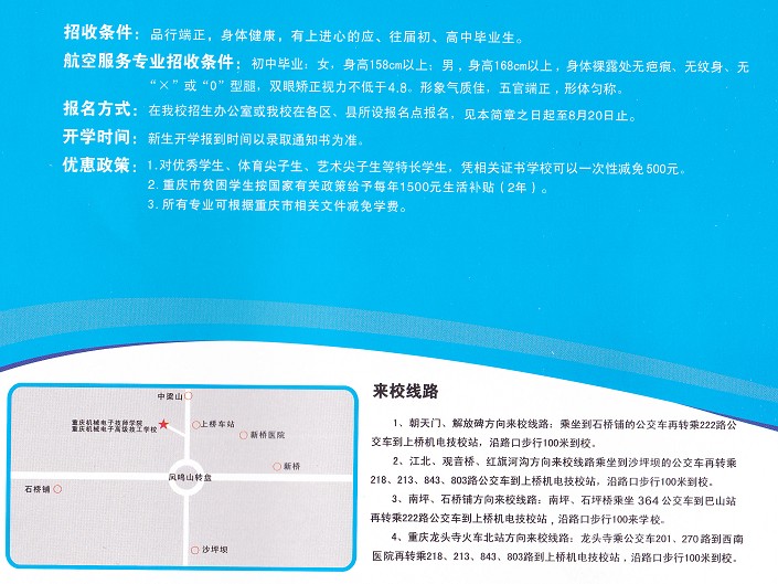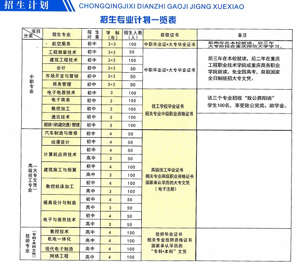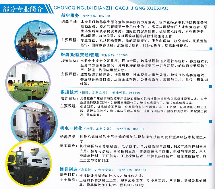 中职专业:航空服务、电子电器技术、电子商务、数控加工、通讯技术、旅游(轨道交通)管理