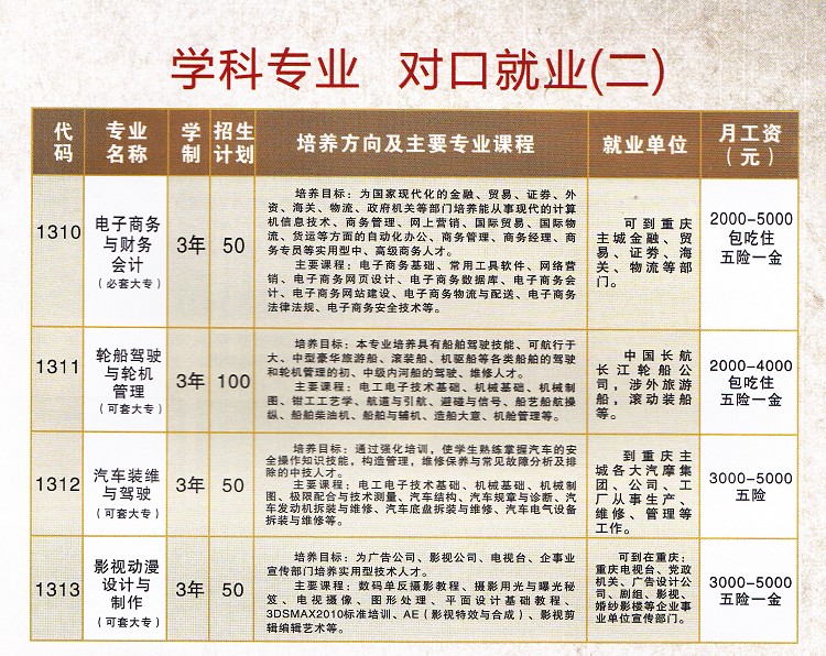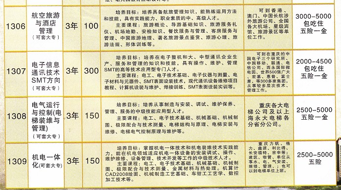 (可套大专)航空旅游与酒店管理、电子信息通讯技术STM方向、电气运行与控制(电梯装维与管理)、机电一体化、轮船驾驶与轮机管理、汽车装维与驾驶、影视动漫设计与制作