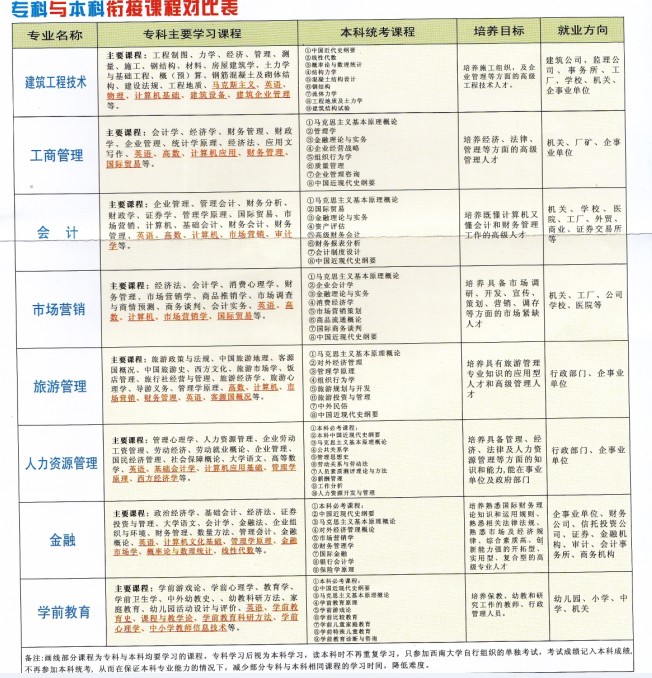 答:普通“专升本”是专科毕业后再升入本科学习,获得本科证书,“专衔本”是在读专科的同时进行同专业的本科学习,即专本同读,获得本科毕业证。普通高等教育“专升本”的人数有限,升本难度大,时间长,读“专衔本”没有人数限制,时间短,是获得本科文凭的最好途径。
