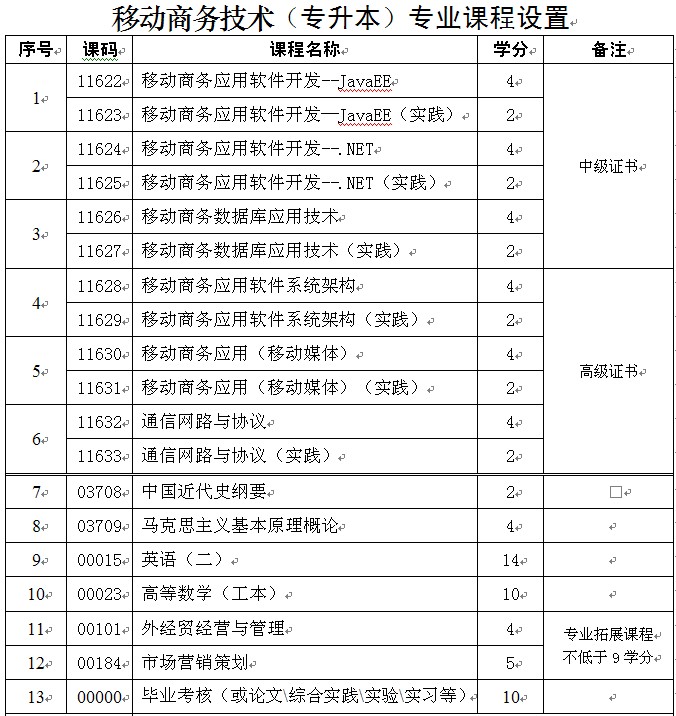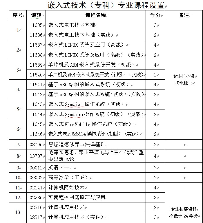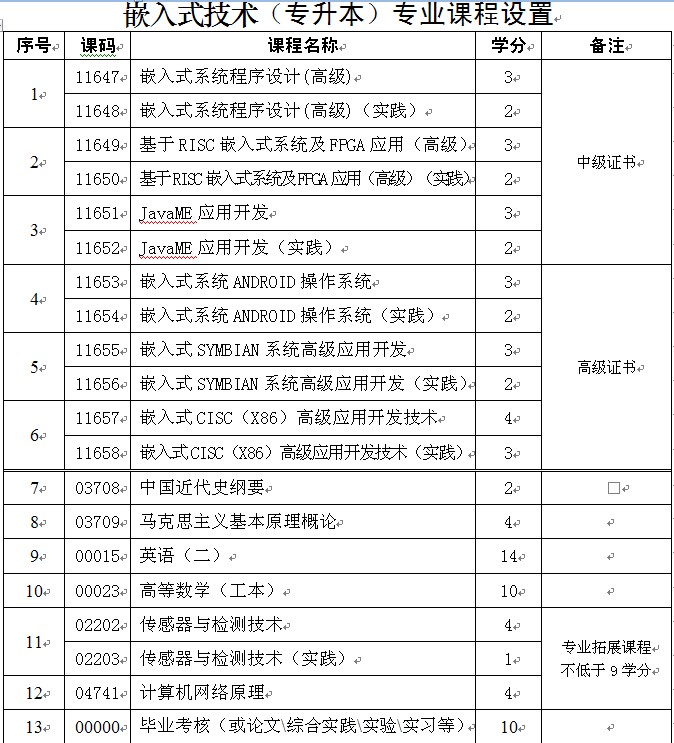 (2)通过序号为1~3门课程的考核, 可获得全国信息技术高级人才水平考试(NIEH)“嵌入式技术工程师”证书(中级)或)“移动商务技术工程师”(中级),通过序号为4~6门课程的考核, 可获得全国信息技术高级人才水平考试(NIEH)“嵌入式技术工程师”证书”(高级)豁)“移动商务技术工程师”(高级)。
