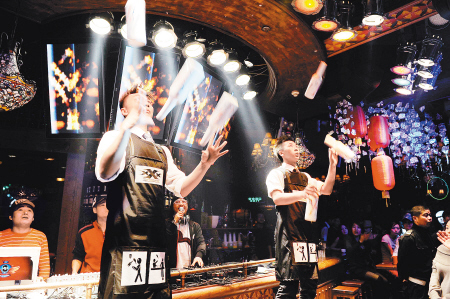 花式调酒最早起源于美国,在八十年代开始盛行欧美各国,但对我国来讲只是近几年的新兴行业有很大的发展潜力。花式调酒师是在酒吧或餐厅专门从事配制酒水、销售酒水,并让客人领略酒的文化和风情的人员,调酒师英语称为bar tender或bar man。酒吧调酒师的工作任务包括:酒吧清洁、酒吧摆设、调制酒水、酒水补充、应酬客人和日常管理等。而在国内的调酒师随着近年酒吧行业的兴旺,也渐渐成为热门的职业。