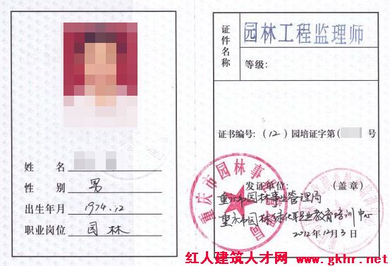 寻找证书样本如下,请重庆园林工程监理师速联系!