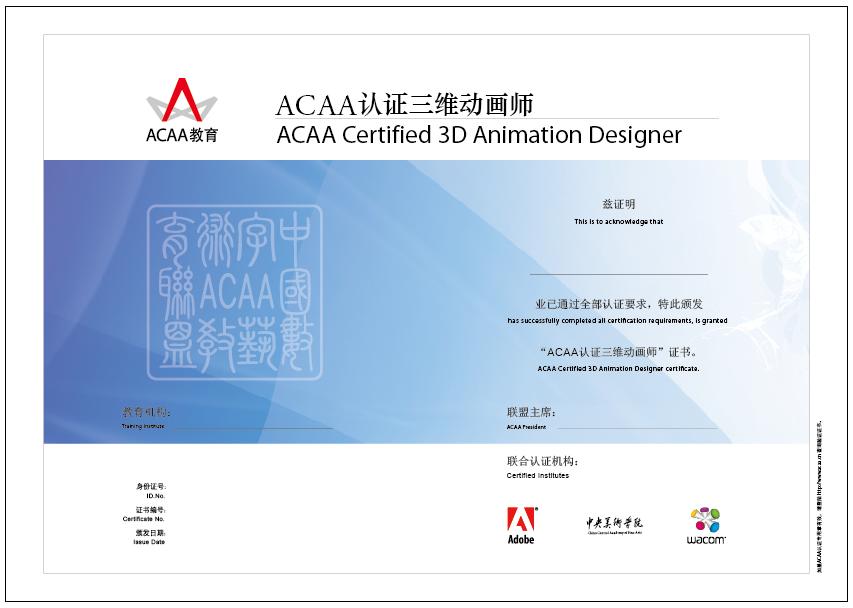 4、能考取相关行业权威资质认证,如三维动画师(ACAA权威认证)。