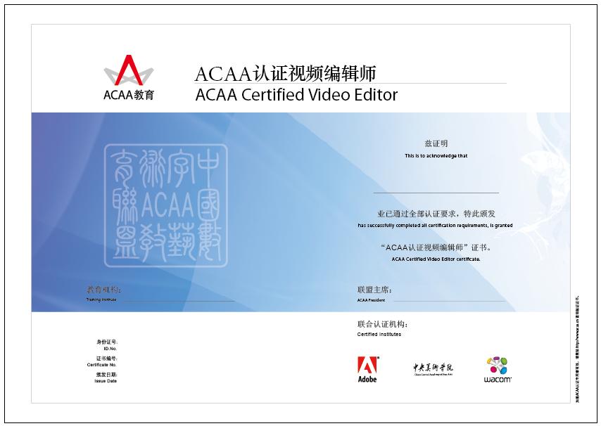 下图为ACAA认证视频编辑师证书示例(可点击查看)