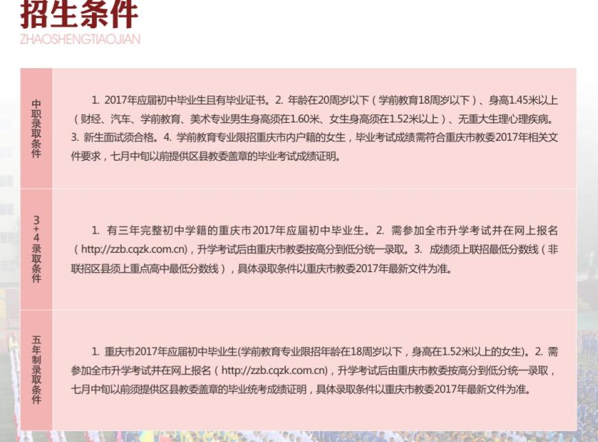 1、所有专业均为三年制中职学历教育,招收应往届初中毕业生,从即日起可到学校招生科报名,也可在各区县指定的招办工作人员处报名,学校实行计划招生。
