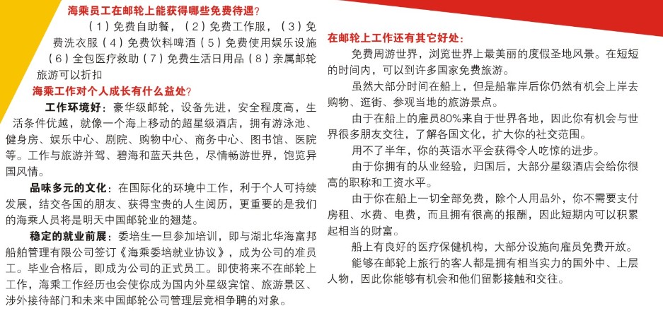 海乘员工在游轮上能获得哪些免费待遇