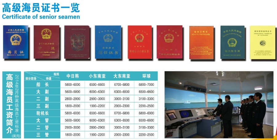 高级海员待遇:高级海员年薪十万元人民币以上,生活费和劳务费另计,用人单位按国际公约为船员购买相关保险。