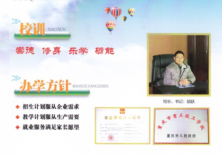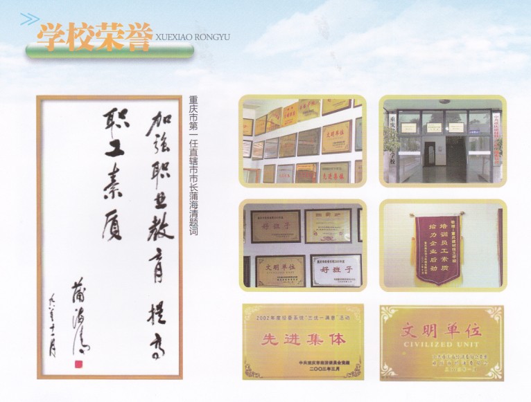 学校被重庆市人民政府命名为“重庆市重点技工学校”;历年来被重庆市经济和信息化委员会多次授予“文明单位”、“三优一满意”活动先进集体、“好班子”等荣誉称号,2004年被市农委确定为“百万农村劳动力专业转移”首批定点培训单位,为我市城镇化建设做出了积极贡献。